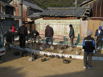 2月14日(日)午前8時30分より昨年完成したチビッコ広場(福島辰治さん宅西)に植樹が行われました。 作業に参加したのは、自治会協議員とボランティアの皆さん。吐く息も白い早朝、アジサイ100株、ハナミズキ50本(白25本、赤25本)が手際よく植樹されていきました。植樹後、同公園は「和光アジサイチビッコ広場」の名にふさわしい姿となり、「古墳とアジサイの郷見野」の一翼を担います。