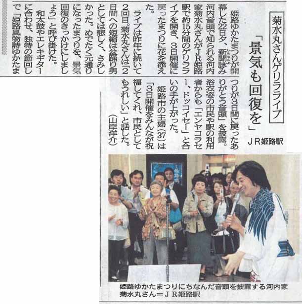 河内家菊水丸ゲリラライブと独演会の記事が新聞に掲載されました。