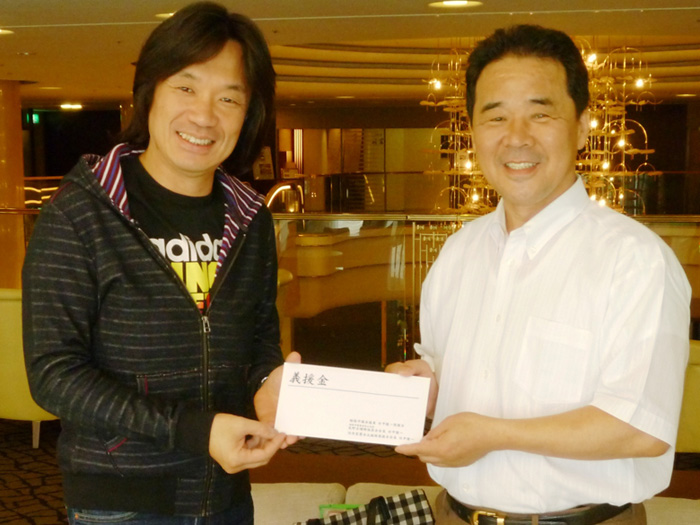 被災地へ菊水丸師匠に義援金を託す