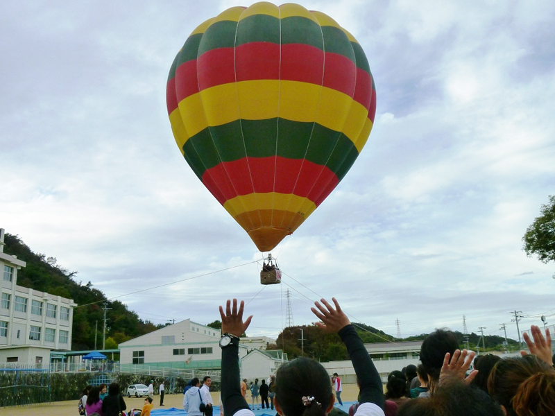 見野古墳群保存会が協賛し、竹中隆一会長が実行委員長も務める第6回古墳祭りが11月6日(日)、四郷町見野で無事開催されました。今年の目玉である熱気球体験搭乗を始め、「うまいもん市」や各アトラクションなど盛り沢山のイベントの効果もあり、昨年にも増して会場は大賑わい。来客者数は約3,500人を数えました。事前の天気予報で降水確率は70%、当日早朝も雲が広がる不安な天候でした。今回のイベントの中でも特に気球は雨や風に弱く、中止の可能性もありました。このため竹中隆一委員長以下協議を重ね、急きょ見野古墳群スタンプラリーと熱気球体験搭乗を2時間繰り上げ、雨雲レーダーを睨みながらの綱渡りの実施となりました。途中、降雨による中断はありましたが、この判断が奏功し約500人の方に気球に乗って古墳のまちを一望し、ひとときの空中浮遊を楽しんでいただくことができました。