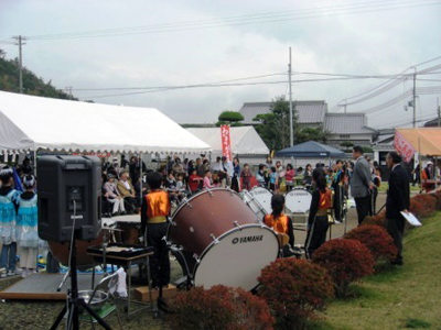 交流館会場では10時から竹中隆一委員長から開会の挨拶の後、城西小マーチングバンドによる演奏で今年の古墳祭りが開幕されました。