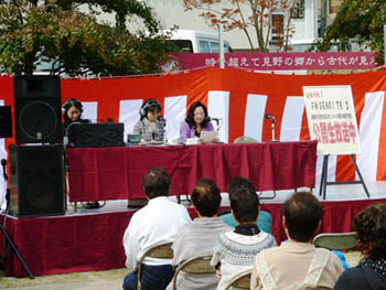 11月2日(土)から3日(日)にかけて見野の郷交流館で第8回古墳祭りが開催されました。2日(土)は前日祭を開催、その様子はFMゲンキで公開生放送されパーソナリティー西田理恵さんが竹中安美理事長とともに古墳祭りの見どころを紹介してくれました。