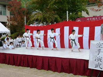 ▲ 沖縄といえば空手。地元の「土屋道場」の皆さんが