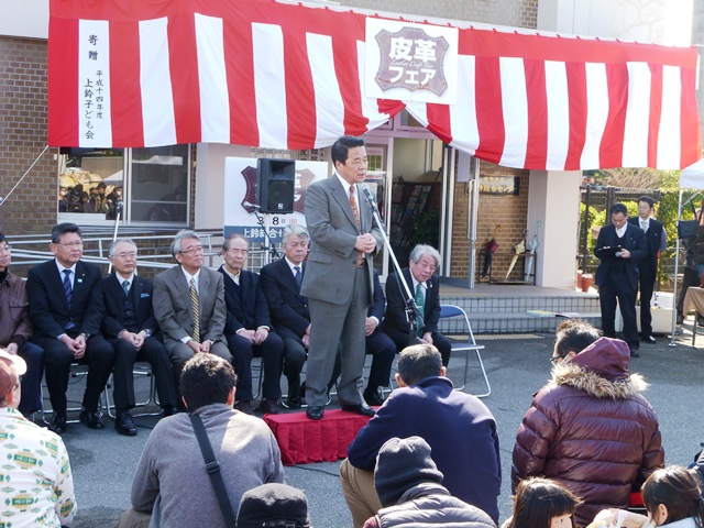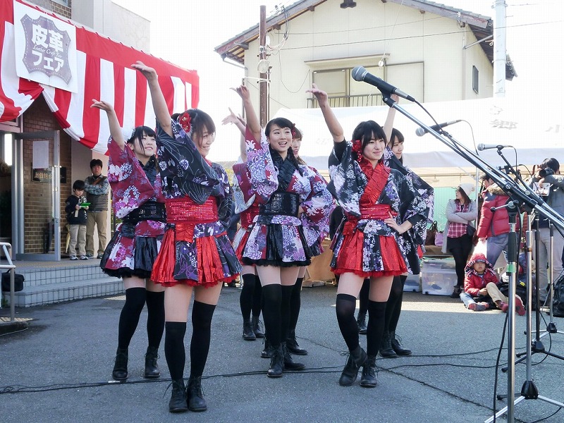啓蟄が過ぎたばかりの3月8日(日)、1500年の歴史と伝統を誇り世界で称賛される姫路の皮革をPRする皮革フェアが姫路市御国野町及び四郷町内で開催されました。変わりやすい天候が続いていましたが、この日は春色の和やかな日和となりました。 今年で第7回目の開催となったこの日、定刻の午前10時には皮革フェア実行委員会委員長を務める竹中隆一市議会議員が多数の来場者を前に開会を宣言すると、姫路のご当地アイドルグループ「KRD8」の皆さんが歌と演技でオープニングを飾り、皮革製品と皮革のまち四郷町をしっかりPRしてくれました。 |
