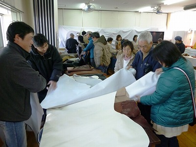 | この日は地域の内外から家族連れなど約4,500人が訪れ、マイクロバスも利用しながらスタンプラリーも兼ねて会場となった西御着、上鈴、中鈴総合センター及び見野の郷交流館を巡りました。それぞれの会場を訪れた皆さんは、地元の皆さんの手料理で体を温めながら、お買い得の皮革製品の展示即売会やレザークラフト体験教室など盛りだくさんのイベントで早春の一日を楽しみました。 |