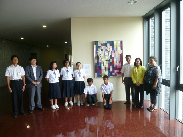 8月2日(火)に、姫路市埋蔵文化財センター『まい姫』において、開館10周年を迎えたお祝いとして見野古墳群保存会が共同製作した「ポシャギ」(パッチワーク)の贈呈式が行われました。