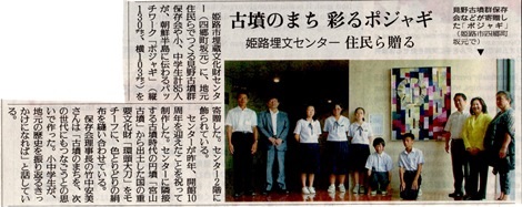 見野古墳群保存会の活動(姫路市埋蔵文化財センター開館10周年祝い)が、8月14日の読売新聞、8月17日の神戸新聞に掲載されました。