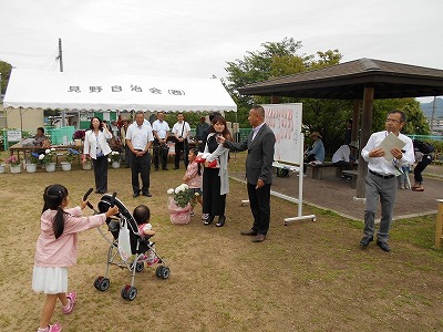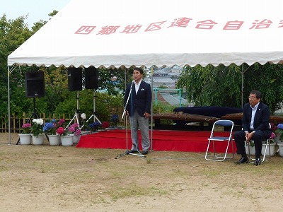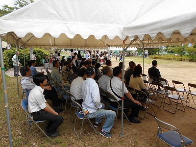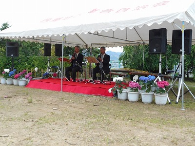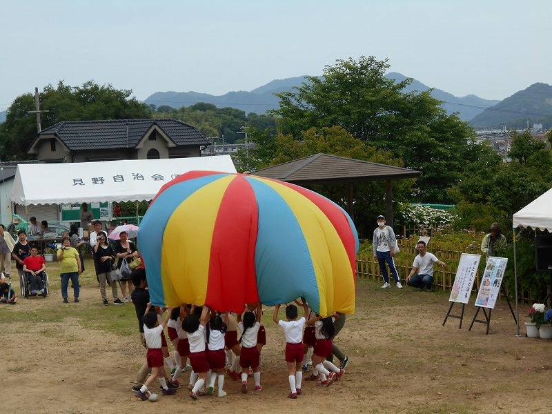 見野の郷交流館運営委員長を務める竹中隆一見野古墳群保存会会長の開会挨拶からはじまり、オープニングは今年も四郷和光保育所園児による「パラバルーン演技」で会場を盛り上げてもらいました。そして四郷中学校箏曲部の皆さんと長谷川博山(はくざん)先生と森励山(れいざん)先生による琴と尺八の合奏などで楽しませていただきました。
