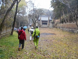 1月20日(日)に、第11回目となる姫路古墳ロード歩こう会を開催しました。今回は、見野古墳群、新羅神社経由で、長塚古墳、火山古墳群、大年神社、姫路市埋蔵文化財センターを巡る約7KMの明田方面コースでした。今年は残念ながら晴天には恵まれませんでしたが、 それでも、市内外から約350人もの方々に参加者いただきました。 姫路古墳ロード歩こう会推進委員会委員長を務める竹中隆一見野古墳群保存会会長、西田啓一市議会議員、黒川優副市長の挨拶から始まり、見野の郷交流館を出発しました。傘をさしたり、カッパを着たりとそれぞれに雨対策をして、列を乱すことなく軽快に歩いていきます。途中の新羅神社では元平和資料館館長の福井氏が新羅神社の由来を丁寧に説明され、地域の知識を深めながら順調にコースを踏破して行きます。