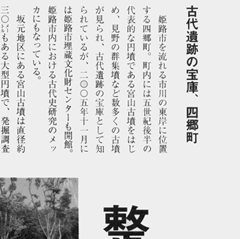「BanCal バンカル」 No.62 2007年冬号 ※『BanCal(バンカル)』…財団法人姫路市文化振興財団が発行する季刊誌。 「播磨がみえる」を編集方針に、歴史・地域・文化・紀行・自然等の播磨の情報を発信している。 今年、2006年夏号で創刊15年を迎え、既刊も60号を数える。